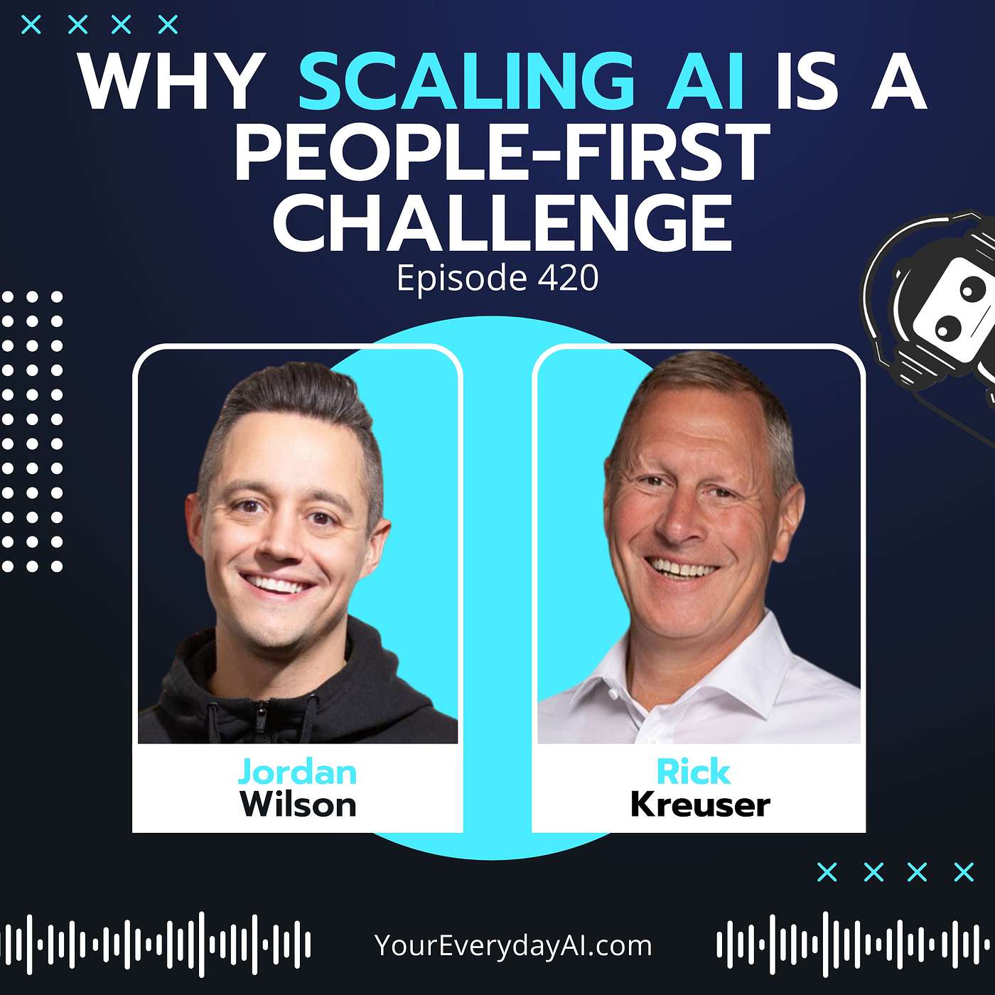 Connect with Jordan on LinkedInTopics Covered in This Episode:Misconceptions about AI scaling as a technical challengeIntroduction to Lenovo's AI Center of ExcellenceImportance of defining business outcomes in AI implementationAI as a people-first challenge and its implicationsThe 'unlearning' concept in AI adaptationThe impact of AI on productivity and workforceImportance of transparency in AI adaptationDiscussing Lenovo's internal AI use case (Studio AI)Future predictions for AI: on-device AI and multi-agent environmentsAI's impact on the future of workConcepts of responsible AIBrief overview of Lenovo's AI policy and governance committee.Timestamps:00:00 Visit website for free AI content and resources.04:24 Start AI with a clear outcome in mind.07:21 Embrace AI to transform and enhance work.11:52 Leadership alignment is crucial for AI implementation.14:20 Personal productivity successes not always shared internally.19:30 Organizations must consider the human side when scaling AI.21:10 AI now dominates US market's top companies.24:32 On-device AI becomes accessible; alternatives emerge.27:04 Sign up for informative AI newsletter recap. Keywords:Scaling AI, technical challenge, generative AI, inference cost, organization, people first challenge, AI in businesses, daily podcast, livestream, AI content, AI news, AI center of excellence, leadership, productivity, efficiency, Lenovo, technology, security, process, responsible AI, AI discover, AI policy, governance, AI outcomes, AI deployment, on-device AI, language models, motorola, business strategies, AI journeyEp 420: Why scaling AI is a people-first challenge with Lenovo's Rick Kreuser Send Everyday AI and Jordan a text message. (We can't reply back unless you leave contact info) Start Here ▶️Not sure where to start when it comes to AI? Start with our Start Here Series. You can listen to the first drop -- Episode 691 -- or get free access to our Inner Cricle community and all episodes: StartHereSeries.com Also, here's a link to the entire series on a Spotify playlist.