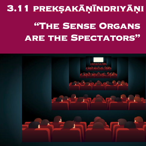 Imagine a projector in a movie theater shining it’s light onto the screen in front of you. You don’t see the projector, or the light streaming through the air, you only see the shapes on the screen. We react to the actors, and the drama projected in front of us— and it seems like a miracle, but the actors we watch the most keep getting more and more lines in this movie of our life. Good, bad, or ugly— the roles we identify with on the screen keep getting bigger and bigger parts. The Shiva Sutras tell us that this is because the projector is not behind us, but within us. And these actors are reading the very lines that we are writing for them, in real time. In this way, we see that we are writing this movie of our lives, and if we want to breathe some fresh life into it, this Sutra teaches, we must step back from the re-acting process and let this movie start to develop more naturally. As we learn to step back from the screen of our mind and senses we can allow our lives to play out in a more natural way. This doesn’t mean the movie stops, far from it, in fact yogis tell us through the generations that this is the only way to finally let the movie of our life play out to it’s highest fruition. Welcome to Shiva Sutra 3.11, The Senses are the Spectators.
