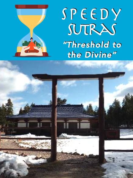 Shoshoni has an incredible Torii outside of its main temple, a huge threshold you walk through marking a transition from the mundane to the celestial. We walk through many thresholds in our daily life, and even though they might not have a temple on the other side, we can still use these transition points to make the room we enter more sacred within ourselves. When we walk through a doorway, we are usually caught up in the anticipation of the joy we expect to find on the other side of it, finding little bits of fleeting satisfaction in the many rooms of our life, but rarely enough to fulfill us. Meditation is the practice of opening the door to our heart without losing ourself in any particular object. This practice allows us to expand our heart’s threshold in a very natural yet profound way, until the joy that we’re used to chasing after seems to comes to us. This is because the greatest joy in life is that of an open heart. As Sri Shambhavananda teaches, “Happiness is something that shouldn’t be dependent on external things. It should be an experience of your true nature…Having that realization you become free. Free to enjoy the world fully, free to be a part of many things, but never to lose yourself in any of them.” It is the search for inner joy that frees us from our outer suffering, which is why Shiva Sutra 3.25 also teaches that “Karma can only be overcome if it is enjoyed, it cannot be cast aside or abandoned,” meaning the real work of overcoming our karma isn’t in accepting or rejecting the objects of our life, but in keeping our hearts open as we encounter those objects. So the next time you are passing through a threshold towards your object of joy, be it a refrigerator door or an office door— try slowing down your gait, exhale to surrender the object your approaching and inhale to drink a little bit of the present you are walking within. Because this door of the present, which opens in your heart, is the only threshold we must pass through to find our joy. And if you’re lucky enough, you might look back and see someone you can hold that door of the present open for, allowing them the opportunity to open their heart as well.