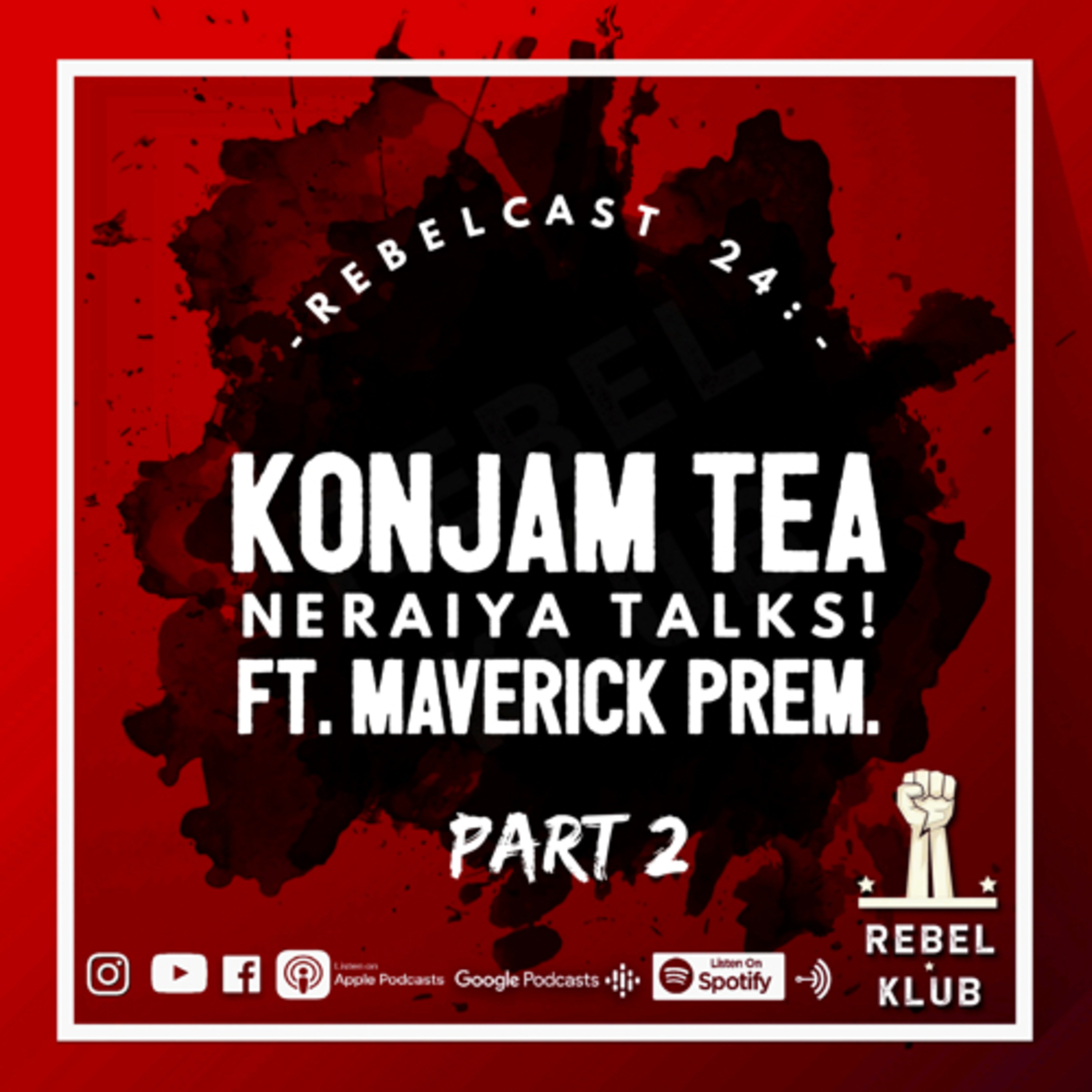 In this part 2 episode of Konjam Tea Neraiya Talks, you’re going to listen to a heartfelt conversation with Maverick Prem, a creative writer and film maker who sees the world from an aesthetic perspective. We’ve conversed about: 1. Positive Dependency on relationships. 2. Balance between Care & Possesive-ness. 3. Parenting. 4. The world is not only for humans. 5. Art of living. 6. Purpose of life. And much more.... Prem anna's IG- https://instagram.com/maverick.prem?utm_medium=copy_link Book link: https://www.amazon.in/When-Souls-Make-Love-Maverick/dp/938975982X Rebel Klub- https://instagram.com/rebel.klub?utm_medium=copy_link