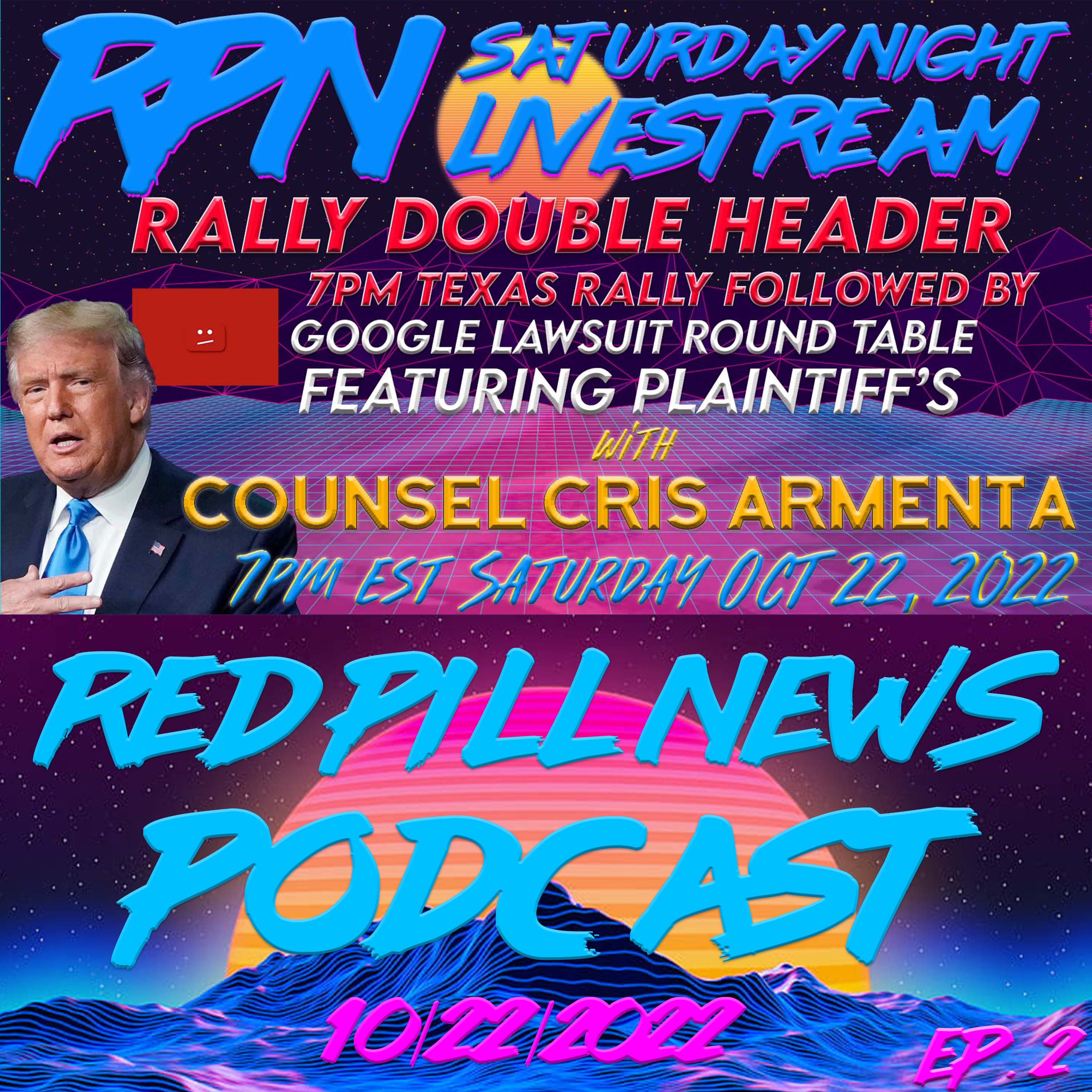 Tonight President Trump speaks from Texas at 8pm, and immediately after will be our Youtube lawsuit round table with several of the plaintiff’s including myself Zach Vorhies, Spaceshot76 and counsel Cris Armenta Save $50 off a 4 week supply of food: http://www.PrepareWithRedPill78.com Feel Focused, Energetic and Rested Today, click the link below https://www.c60evo.com/redpill78/ Use coupon code REDPILL78 to get an extra 10% off ULTRA MAGA Collection from Rise Attire: https://riseattireusa.com/ultramaga/ PLEASE CONSIDER SUPPORTING THE CHANNEL: http://www.redpill78news.com/donate https://libertylinks.io/RedPill78 PROTECT YOURSELF! Get Dr. Z’s Z Stack today and support this show: https://zstacklife.com/?ref=azbl62h8hd Support My Pillow & RedPill78: Use Promo code - RP78 , or call 800-890-4893 https://www.mypillow.com Audio Podcast: https://app.studeo.fm/channels/130 http://www.redpill78news.com/podcast Telegram: https://t.me/OfficialRedPillNews NEW MAILING ADDRESS: Zak Paine - RedPill78 250 Palm Coast Pkwy NE Suite 607-180 Palm Coast, FL 32137-8225 MAKE DONATIONS PAYABLE TO CASH OR REDPILL78 Cash: $ZakPaine Subscribestar: https://www.subscribestar.com/redpill78 Donate: http://www.redpill78news.com/donate Buy Me a Coffee: https://www.buymeacoffee.com/RedPill78 Crypto Donations: Bitcoin Donations - 33zU6nAmpz9xCNHuVAUugTAvV5cAeM4PJb Bitcoin Cash - qqwzw2s5z9ru434p5zhzfjaegllcvk5nq5atsetvm2 Ethereum Donations - 0xa418De68a42a02Ab395013f6CBe516721acAd706 LiteCoin Donations - MRMyqJPi7ar6z76dkKhbuRvZ6i3XDD2cg9 LBRY Coin: bJTUi5NSYPMsSxnLDFidR9AKmFkrbtrnH5