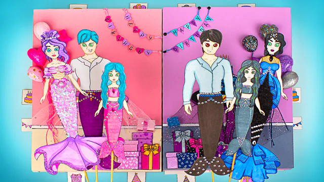 Hi, everyone! Today we will celebrate two unusual birthdays. Who do you think are the birthday girls? Mermaids! And since no one prepared for the party in advance, we will do it right now! The special thing about these birthday parties is that we will create everything from paper! We will decorate the room with beautiful balloons, tables with shiny tablecloths, and make a few gift boxes. Since this is a true Mermaid family party, the outfits should also be elegant. This is where Sue's fashion help comes in handy! Let's change hairstyles and dresses, adding sparkles and bright colors to them. When all the guests are in place, it's time to open the gifts and enjoy this great day! Join our awesome party! And don't forget to give a thumbs up to other cool videos on our channel: DIY Origami Lalafanfan Paper Duck https://youtu.be/mFEgTDA8G4Y How To Make Cardboard Three Wheel Hamster Car https://youtu.be/MlPvUruAXHY DIY Doll Hacks || Miniature Makeup And Accessories https://youtu.be/6s3yN49hRrk CreditsThis video has English subtitles for your convenience! Check out Slime Sam’s Community Tab and see his best pictures, funny GIFs, new episode announcements and much more! https://www.youtube.com/channel/UCw5VDXH8up3pKUppIvcstNQ/community Subscribe to Sam’s channel and give a thumbs up to motivate him to make more videos for you! https://goo.gl/zarVZo All product and company names shown in the video are trademarks™ or registered® trademarks of their respective holders. Use of them does not imply any affiliation with or endorsement by them. Stock materials: https://www.depositphotos.com Music by Epidemic Sound: https://www.epidemicsound.com/ Opening theme is licensed under music standard license: Title: Cuckoo Source: https://audiojungle.net/item/cuckoo/20801073