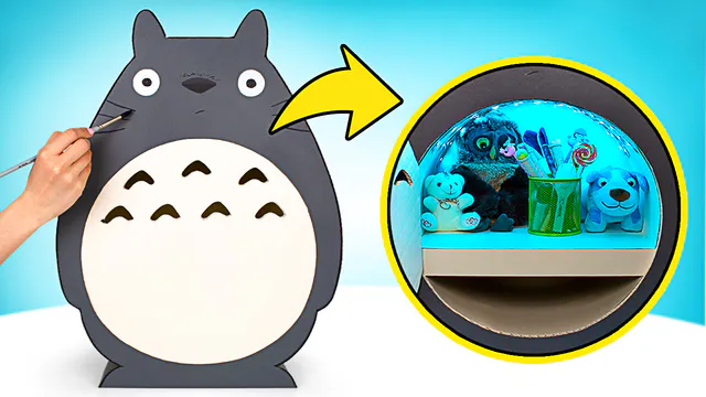 Sue is trying to summon her magical friend! He's big and fluffy, and he will be an inspiration for our magic closet, which we will make today. Guys, do you have any ideas who we are talking about? It's Totoro! So, the Totoro-shaped closet we want to make, apparently can accommodate the whole Tibidaba! This means that you can fit almost anything you want into it! We need large pieces of cardboard to repeat the shape of Totoro and a few rectangular pieces to create a few shelves inside. When the cardboard structure is assembled, we'll glue it around with colored paper and continue decorating. We will make several openings in the door. Through them the light from the LED lights placed inside the cabinet will flow. And on the outside, let's draw a cute Totoro face. All we have left to do is fill up the closet with various things and enjoy the view of our new craft! It turned out incredible, do you agree? Give a thumbs up to this excellent idea, and don't forget to check out more incredible tutorials on our channel: Transform Cardboard Into Vintage Cat House Bus https://youtu.be/6hwfb5TQLOM DIY Fantastic Cardboard Chest https://youtu.be/lyjT4soiVlk WOW! We Made Popular Character From Famous Video Game https://youtu.be/uGuJLdNu2UU CreditsThis video has English subtitles for your convenience! Check out Slime Sam’s Community Tab and see his best pictures, funny GIFs, new episode announcements and much more! https://www.youtube.com/channel/UCw5VDXH8up3pKUppIvcstNQ/community Subscribe to Sam’s channel and give a thumbs up to motivate him to make more videos for you! https://goo.gl/zarVZo All product and company names shown in the video are trademarks™ or registered® trademarks of their respective holders. Use of them does not imply any affiliation with or endorsement by them. Stock materials: https://www.depositphotos.com Music by Epidemic Sound: https://www.epidemicsound.com/ Opening theme is licensed under music standard license: Title: Cuckoo Source: https://audiojungle.net/item/cuckoo/20801073
