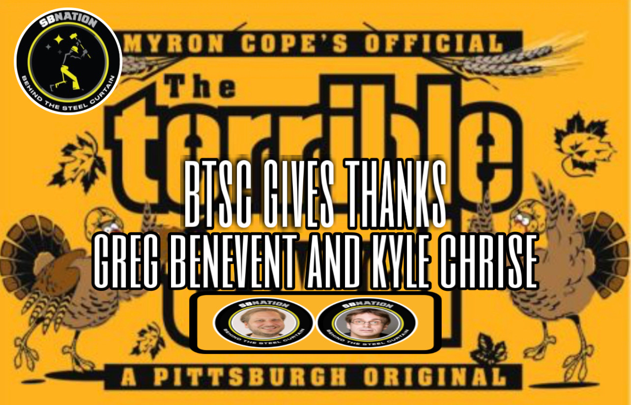 Here at Behind The Steel Curtain, we cherish pretty much the same things you all do. At this time of Thanksgiving, the staff at BTSC would like to share their personal lives with rememberances of Thanksgiving traditions, family, football and more. On this episode, Kyle Chrise and Greg Benevent from What Yinz Talkin' Bout talk turkey for all that they are thankful for. Learn more about your ad choices. Visit megaphone.fm/adchoices