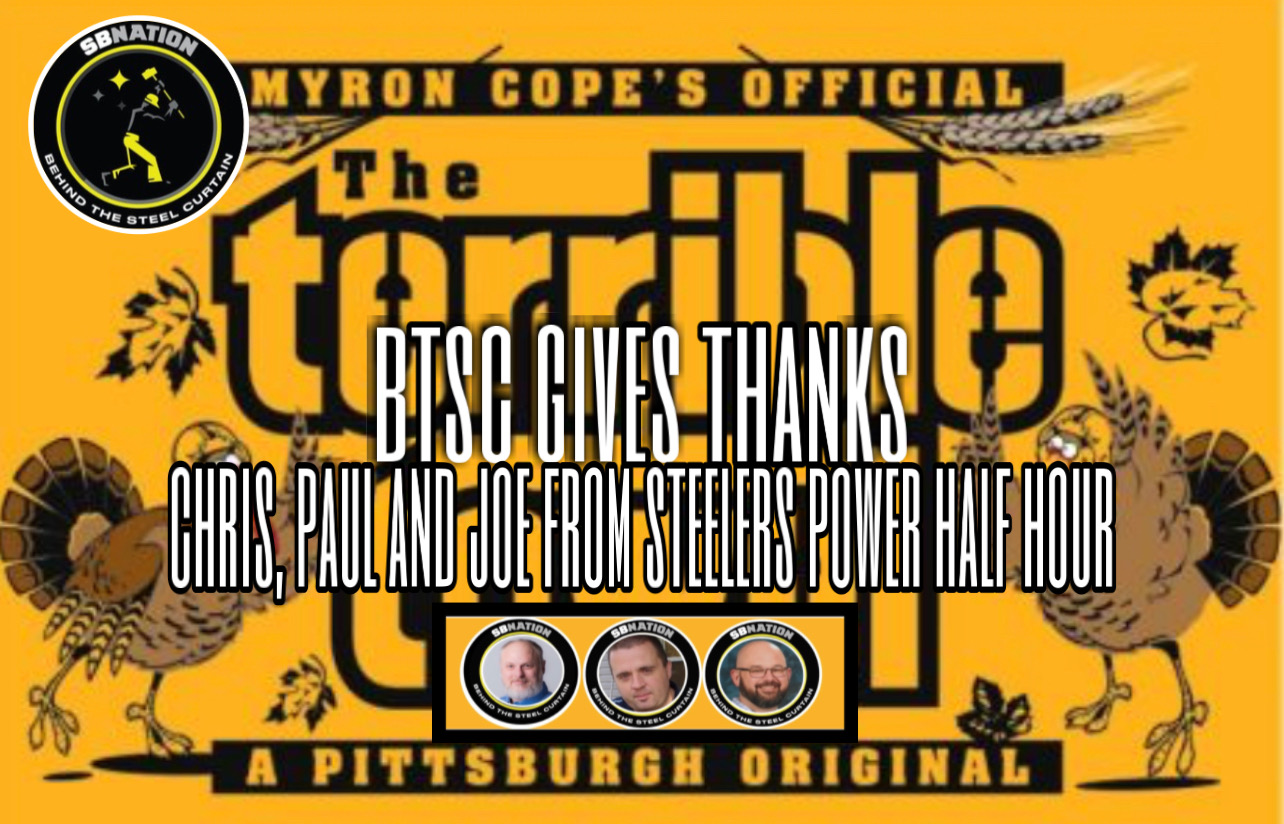 Here at Behind The Steel Curtain, we cherish pretty much the same things you all do. At this time of Thanksgiving, the staff at BTSC would like to share their personal lives with rememberances of Thanksgiving traditions, family, football and more. On this episode, Chris Pugh, Joe Frost and Paul Yanchek from the Steelers Power Half Hour talk turkey of all that they are thankful for. Learn more about your ad choices. Visit megaphone.fm/adchoices