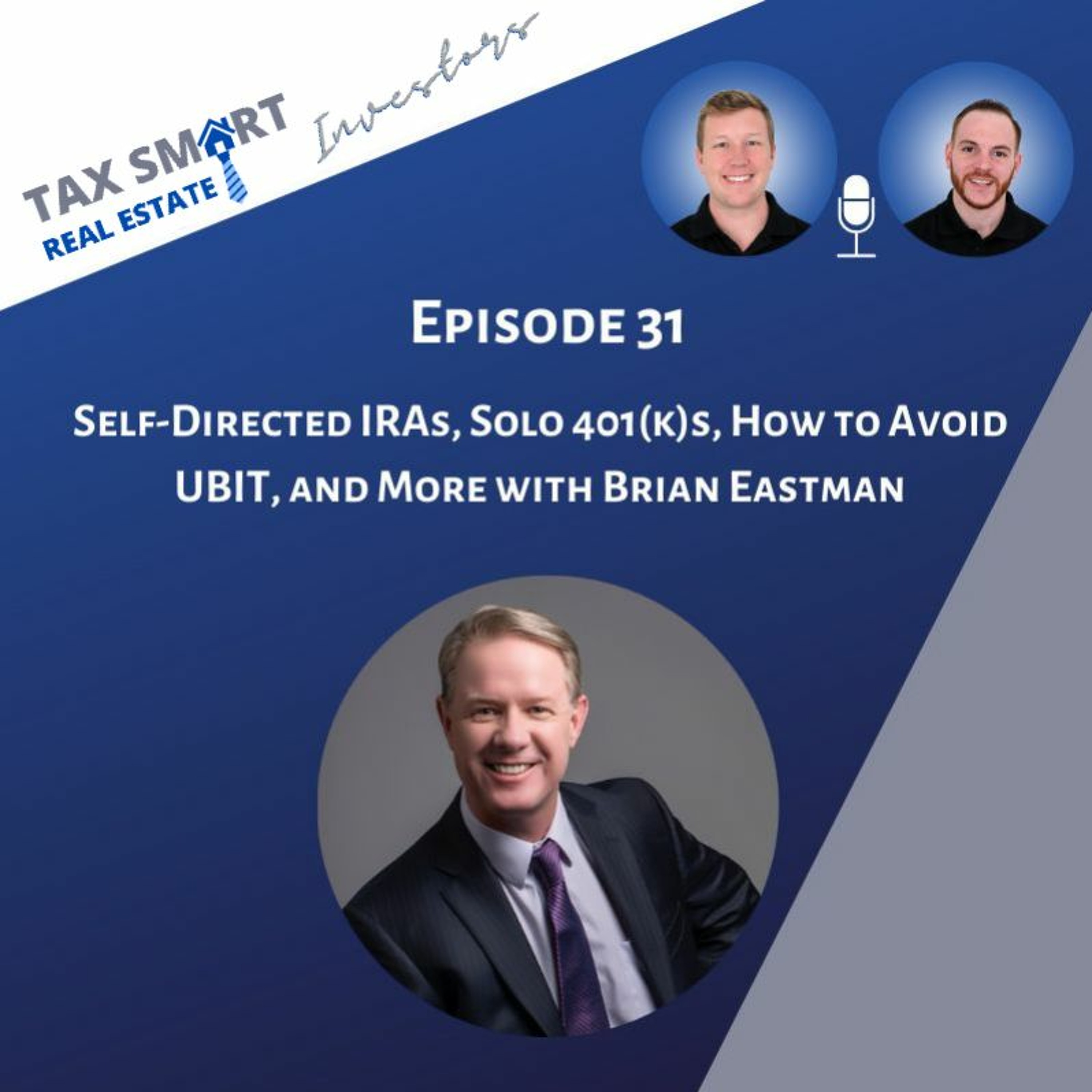 In this episode, we’re joined by self-directed retirement account expert and Principal of Safeguard Advisors, Brian Eastman to discuss Self-Directed IRAs, Solo 401ks, how to avoid UBIT, and more To learn more about Brian and how he can help you visit https://ira123.com/ Join our Facebook group, the one-stop-shop for real estate investors to learn about tax strategy and stay up to date on changing tax laws: www.facebook.com/groups/taxsmartinvestors For an initial consultation from Hall CPA, PLLC visit www.therealestatecpa.com/become-client Subscribe to our YouTube channel: www.youtube.com/c/therealestatecpa The Tax Smart Real Estate Investors podcast is for general information purposes only and is not intended to provide, and should not be relied on for, tax, legal, or accounting advice. Information on the podcast may not constitute the most up-to-date legal or other information. No reader, user, or listener of this podcast should act or refrain from acting on the basis of information on this podcast without first seeking legal and tax advice from counsel in the relevant jurisdiction. Only your individual attorney and tax advisor can provide assurances that the information contained herein – and your interpretation of it – is applicable or appropriate to your particular situation. Use of, and access to, this podcast or any of the links or resources contained or mentioned within the podcast show and show notes do not create a relationship between the reader, user, or listener and podcast hosts, contributors, or guests. Always consult your own tax, legal, and accounting advisors before engaging in any transaction.