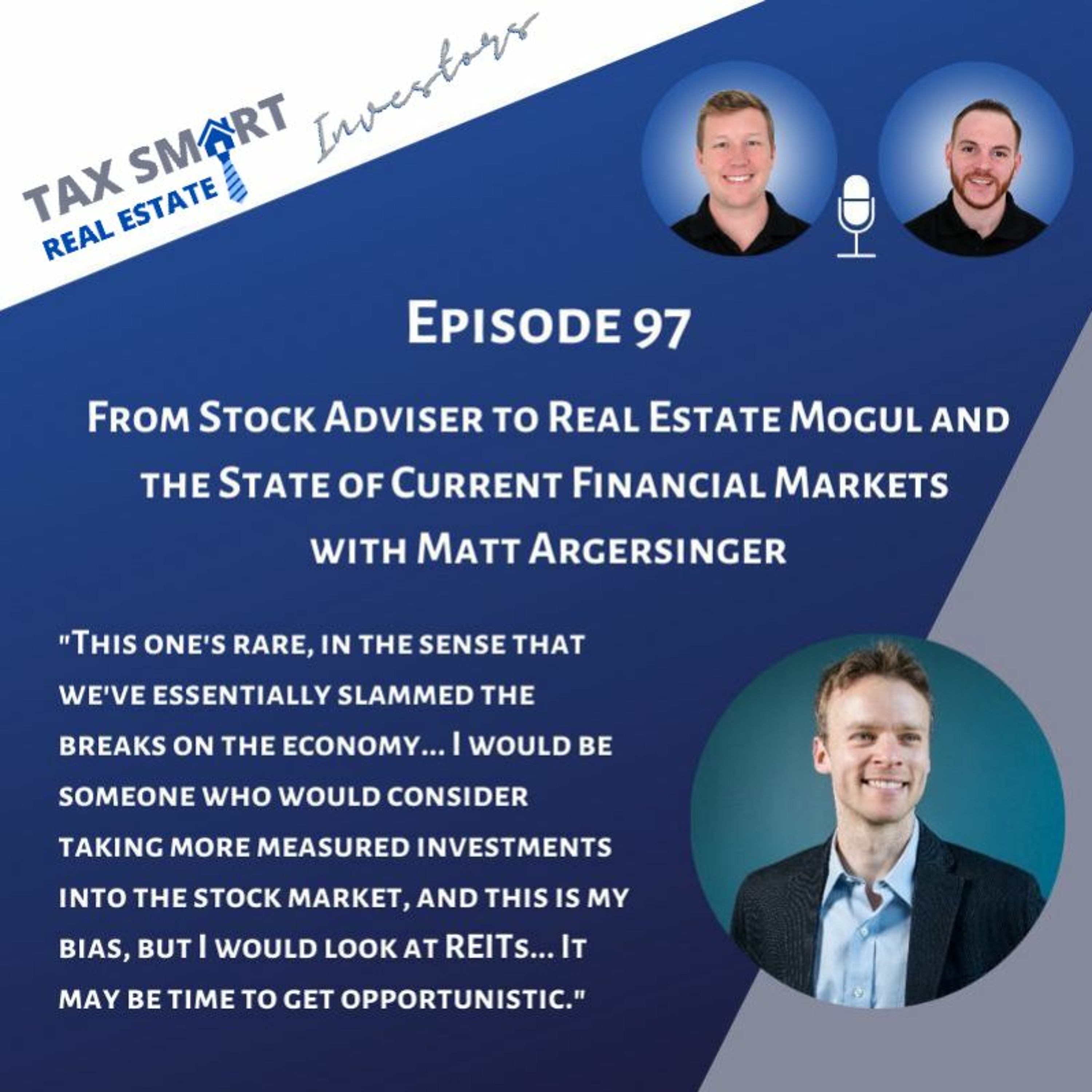 In this episode, we're joined by Matt Argersinger. Matt is a former stock adviser who is now the lead adviser for The Motley Fool's Mogul and Millionacres platform, where he helps members find today's best real estate investment opportunities. We discuss how went from a stock adviser to lead advisor for The Motley Fool real estate program, how he analyzes investment opportunities, portfolio allocation, and his opinion on the current state of the financial markets during this Coronavirus crisis. Learn more about Matt and his work: https://www.fool.com/millionacres/ Join our Facebook group, the one-stop-shop for real estate investors to learn about tax strategy and stay up to date on changing tax laws: www.facebook.com/groups/taxsmartinvestors For an initial consultation from Hall CPA, PLLC visit www.therealestatecpa.com/become-client Subscribe to our YouTube channel: www.youtube.com/c/therealestatecpa The Tax Smart Real Estate Investors podcast is for general information purposes only and is not intended to provide, and should not be relied on for, tax, legal, or accounting advice. Information on the podcast may not constitute the most up-to-date legal or other information. No reader, user, or listener of this podcast should act or refrain from acting on the basis of information on this podcast without first seeking legal and tax advice from counsel in the relevant jurisdiction. Only your individual attorney and tax advisor can provide assurances that the information contained herein – and your interpretation of it – is applicable or appropriate to your particular situation. Use of, and access to, this podcast or any of the links or resources contained or mentioned within the podcast show and show notes do not create a relationship between the reader, user, or listener and podcast hosts, contributors, or guests. Always consult your own tax, legal, and accounting advisors before engaging in any transaction.