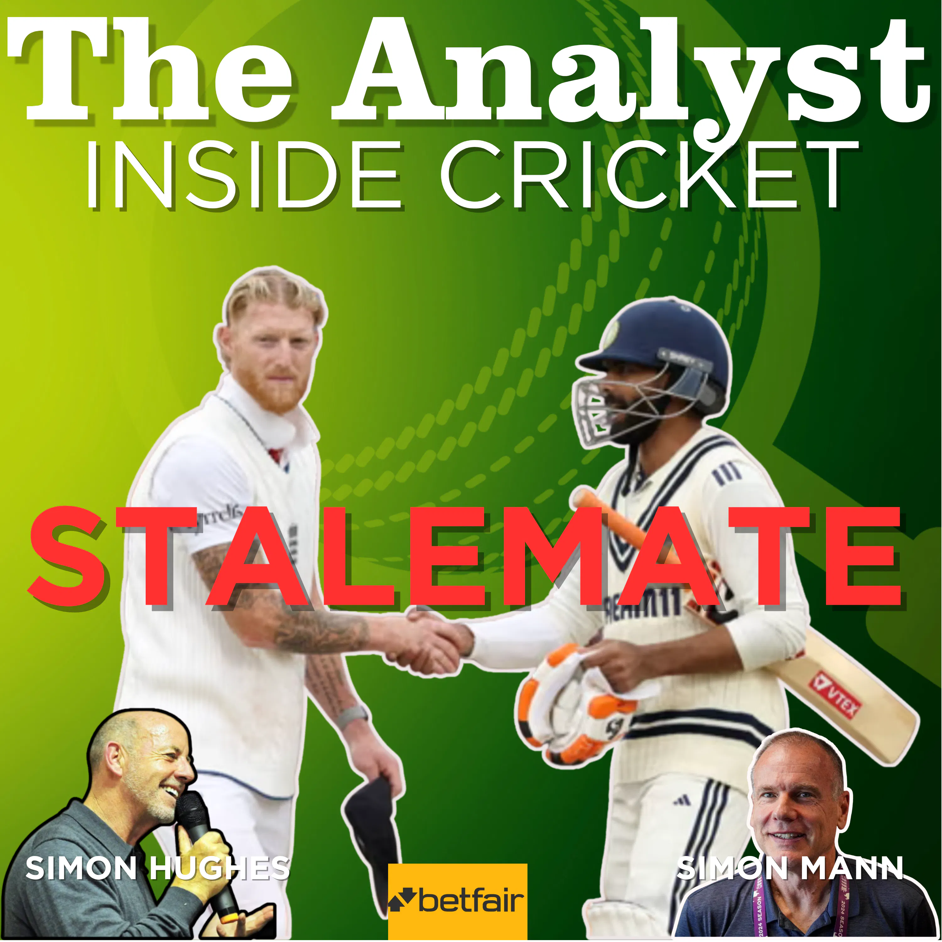 Five days of stretching every sinew on the field by both sides has ended in stalemate at Old Trafford. Superb tenacious batting by india - having been 0-2 - held England at bay for over one and a half days during which they only lost two more wickets. In the end the dead pitch was the winner. Simon Hughes and Simon Mann review a match that broke many batting records and was a triumph for the warrior-like Ben Stokes and his opposite number the courageous Shubman Gill and leaves the series poised at 2-1 with one match left. Lets see who's left standing in three days time at the Oval. Learn more about your ad choices. Visit podcastchoices.com/adchoices