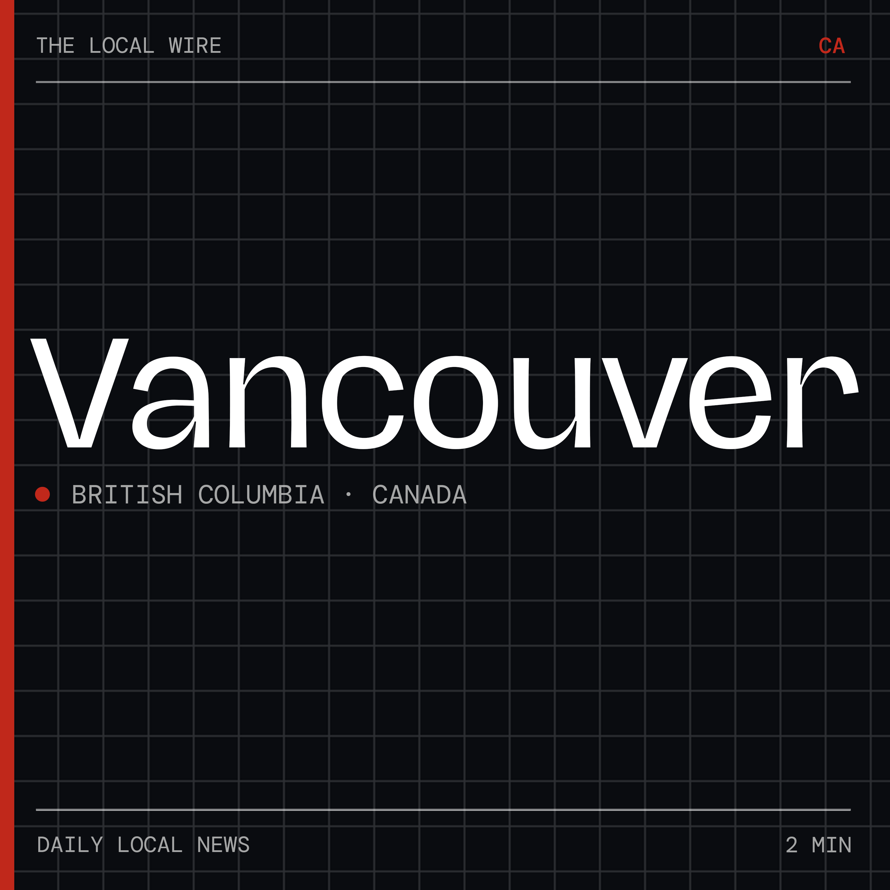 <p>Daily 2-minute local news for Vancouver, British Columbia (Canada): key incidents, city decisions, events, weather, and trending stories. Fresh every day. </p><p>Powered by The Local Wire.</p>