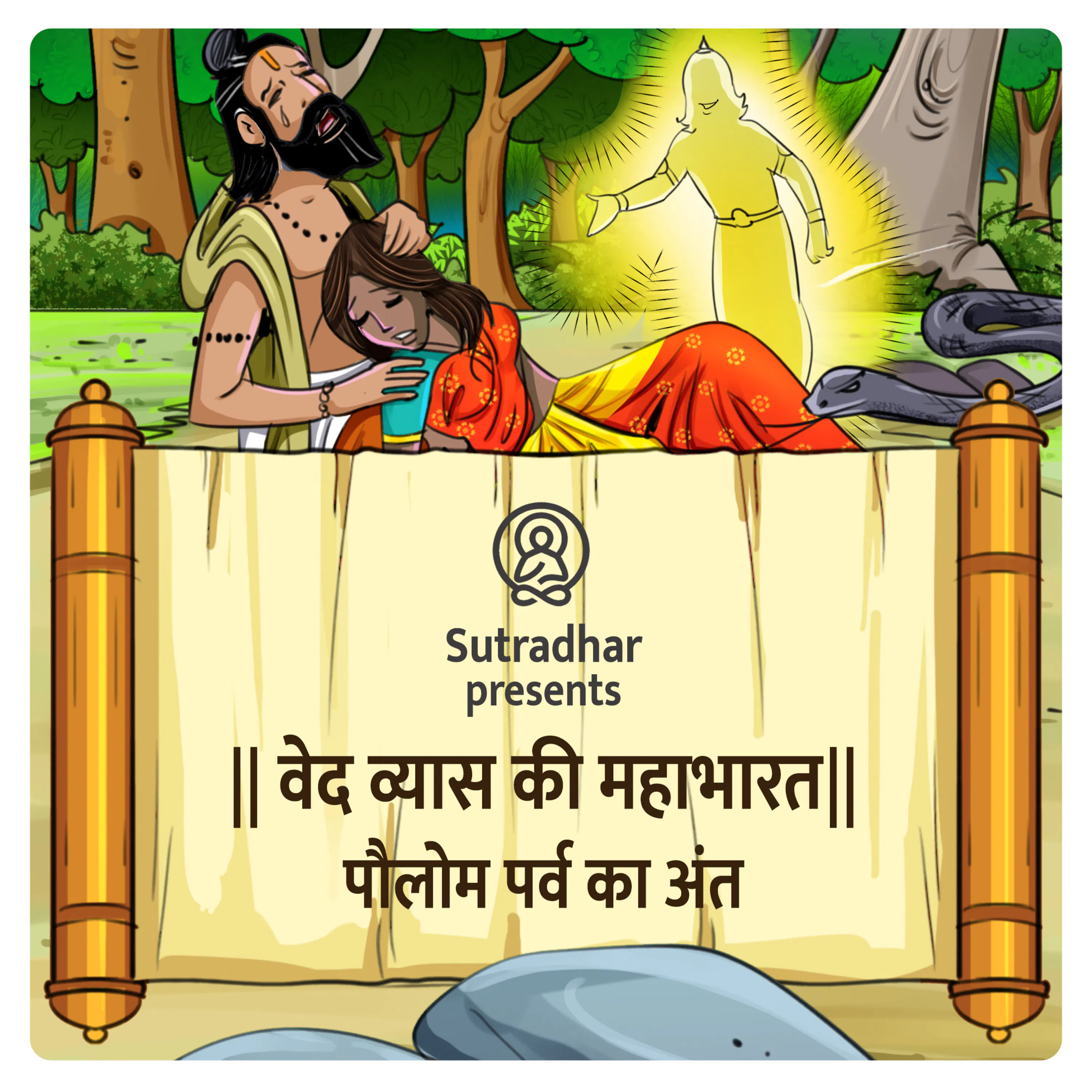 Beginning with Pauloma Parva. In this episode, we will talk about Pauloma parv. We will cover the history of Bhrigu Vansh, and the reasons behind Rishi Bhrigu's son's name being 'Chyavan'. The poster depicts Rakshas Pauloma, who is determined to kidnap Rishi Bhrigu's wife, Pauloma. What will be interesting to know is why the rakshas Pauloma is abducting the wife of the rishi and what is the connection in between her abduction and Agni dev. Learn more about your ad choices. Visit megaphone.fm/adchoices